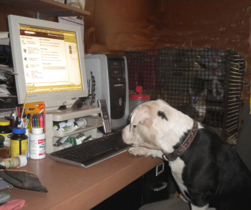 Baby Trixi working on the computer
